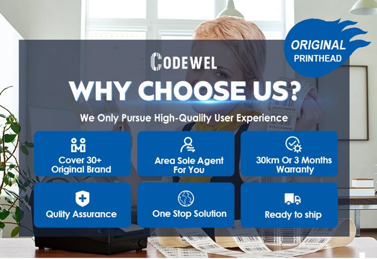1. P: Qual é o princípio de funcionamento de uma cabeça de impressão de transferência térmica? R: O interior da cabeça de impressão é composto por pequenos elementos de aquecimento (matriz de pontos). Após ligar a energia, os elementos de aquecimento são aquecidos seletivamente de acordo com o sinal de impressão, de modo que o revestimento da fita derreta e seja transferido para a superfície do meio para formar uma imagem ou texto nítido. 2. P: Qual é a diferença entre transferência térmica e impressão térmica? R: Impressão por transferência térmica: requer uma fita e o conteúdo impresso é durável, adequado para etiquetas de longo prazo (como logística e armazenagem). Impressão térmica: não é necessária fita e o papel térmico é aquecido diretamente para desenvolver a cor, mas o interior é fácil de desbotar (como recibos de caixa registradora). 3. P: Quais são as vantagens das cabeças de impressão compatíveis com Codewel? R: ① Qualidade ultra-alta, todos os acessórios são 100% novos, feitos na China. ② Adote a tecnologia de filme fino e desenvolva independentemente o design da placa de circuito interno. ③ Forneça a mesma garantia que a cabeça de impressão original. ④ Com uma equipe de P&D de 20 anos de experiência na empresa Rohm de primeira classe, a qualidade da cabeça de impressão pode ser controlada. 4. P: Como instalar corretamente a cabeça de impressão de transferência térmica? R: ① Desligue o dispositivo e remova a cabeça de impressão antiga de acordo com as etapas do manual de instruções. ② Limpe a área de instalação para garantir que não haja poeira ou resíduos. ③ Alinhe a nova cabeça de impressão e fixe os parafusos (evite apertar demais). Calibre a pressão após a instalação para garantir que a cabeça de impressão e o rolo de borracha estejam em contato uniforme. 5. P: O que devo fazer se a densidade de impressão for irregular? R: ① Verifique se a pressão da cabeça de impressão está equilibrada e ajuste a pressão do rolo de borracha. ② Limpe a superfície da cabeça de impressão. ③ Confirme se a fita corresponde à mídia (como fita de carbono à base de cera, à base mista ou à base de resina). 6. P: Com que frequência você precisa limpar a cabeça de impressão? R: ① Uso regular: Limpe após cada rolo de fita ser substituído ou no final de cada dia de trabalho. ② Uso de alta carga: limpe a cada 2-3 horas. ③ Limpe imediatamente quando você notar que a qualidade de impressão se deteriorou. 7. P: Como limpar a cabeça de impressão corretamente? R: ① Use uma caneta de limpeza especial ou um pano não tecido para mergulhar em uma pequena quantidade de álcool isopropílico (não use água ou álcool). ② Limpe suavemente a superfície da cabeça de impressão na mesma direção para evitar arranhões. Após a limpeza, espere secar completamente antes de ligar a máquina. 8. P: Qual é a vida útil da cabeça de impressão? R: Dependendo da frequência de uso, tipo de mídia e manutenção, ela geralmente tem 30-50 km de comprimento, e algumas cabeças de impressão industriais podem imprimir até 100 km de comprimento. 9. P: A cabeça de impressão pode ser reparada? R: A cabeça de impressão é um componente eletrônico de precisão e geralmente não é reparável. Recomenda-se substituí-la diretamente. 10. P: Qual é o DPI da cabeça de impressão? Como escolher o DPI? R: DPI é a resolução: medida em DPI (pontos por polegada). Os valores mais comuns são 203 dpi, 300 dpi, 600 dpi, etc. Quanto maior a resolução, mais fina a impressão. 203 dpi: etiquetas básicas de logística, códigos de barras grossos (como etiquetas de remessa). 300 dpi: códigos de barras finos (como etiquetas médicas), texto pequeno ou gráficos simples. 600 dpi: imagens de alta precisão, microtexto (como etiquetas de componentes eletrônicos, etiquetas antifalsificação).